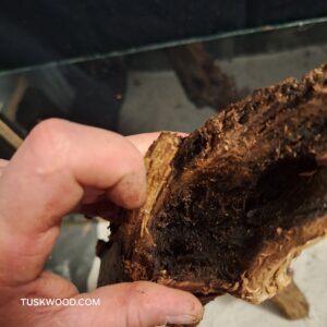 Preparation of the root before use Before placing the Tuskwood in the aquarium, we recommend rinsing and brushing the root with water and a brush (e.g. a dish brush) to remove loose organic matter from the peat moss. Tuskwood is naturally liquid when it is completely dry and needs to absorb water before it sinks on its own. There are two common methods: