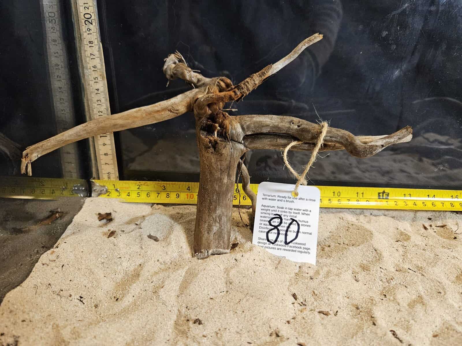 Det är effektfullt med flera i ett större akvarium, men även en som en enskild centrepiece i ett mindre akvarium. Med flera kan man även skapa en känsla av en skog, och man kan ha några som står upp och något som har ”vält” vilket kan en snygg effekt. Javamossa, flame moss och liknande fäster lätt på Tuskwood och det är ofta relativt lätt att skapa en effekt av ett grönskande träd med mossa som ersätter löv. Limma fast mossan med superlim när träet är torrt, eller bind fast mossan med fiskelina tills den har fått egent fäste. Även utan mossa, ger den här designen av rot en snygg effekt. Liggande passar den också som en del av ett Iwagumi style scape i ett större akvarium, som ett enskilt blickfång som kommer upp ur på en större matta av nålgräs eller liknande i ett större akvarium. Vänd nedåt så kan man självklart också skapa en effektfull design av biotop and elle nature aquarium stil, med rötter som tar sig ned ovanifrån.