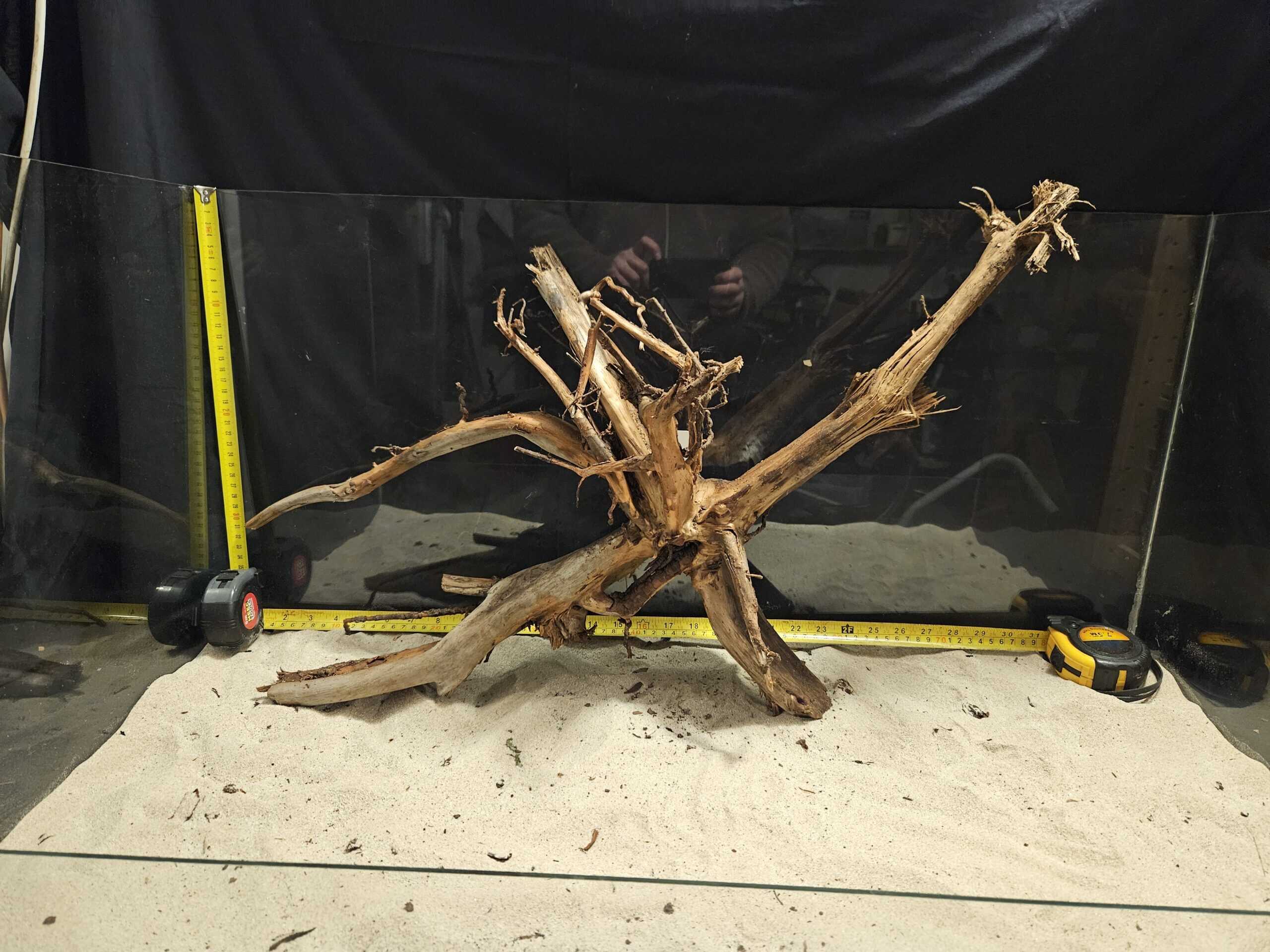 Om du bygger din layout i ett torrt akvarium kan du fästa roten direkt i stenar eller mot glaset med akvariesilikon eller superlim (cyanoakrylat). Detta gör att den ligger stabilt även när vattnet senare fylls på.